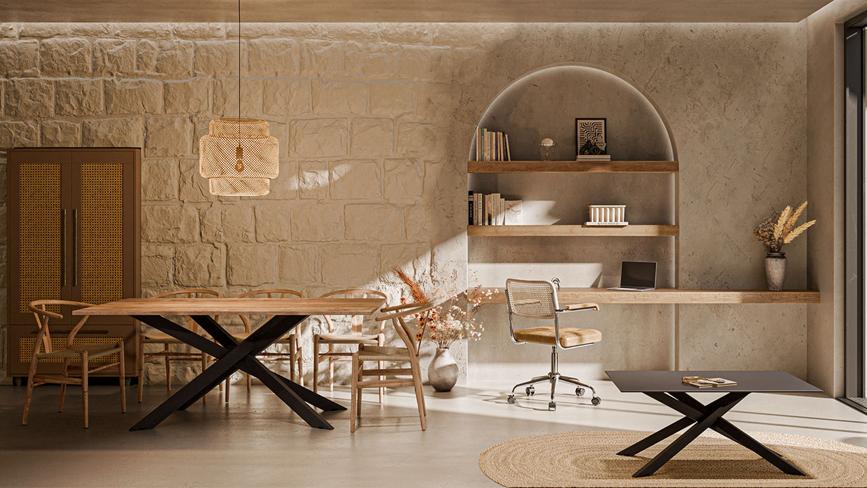 SPIDER impresioneaza prin sistemul sau special de conectare a profilelor, care adauga un element estetic distinct si evidentiaza caracterul mesei intr-un mod unic. Structura independenta ofera stabilitate ridicata, prevenind inclinarea, deplasarea sau balansarea nedorita a mesei.