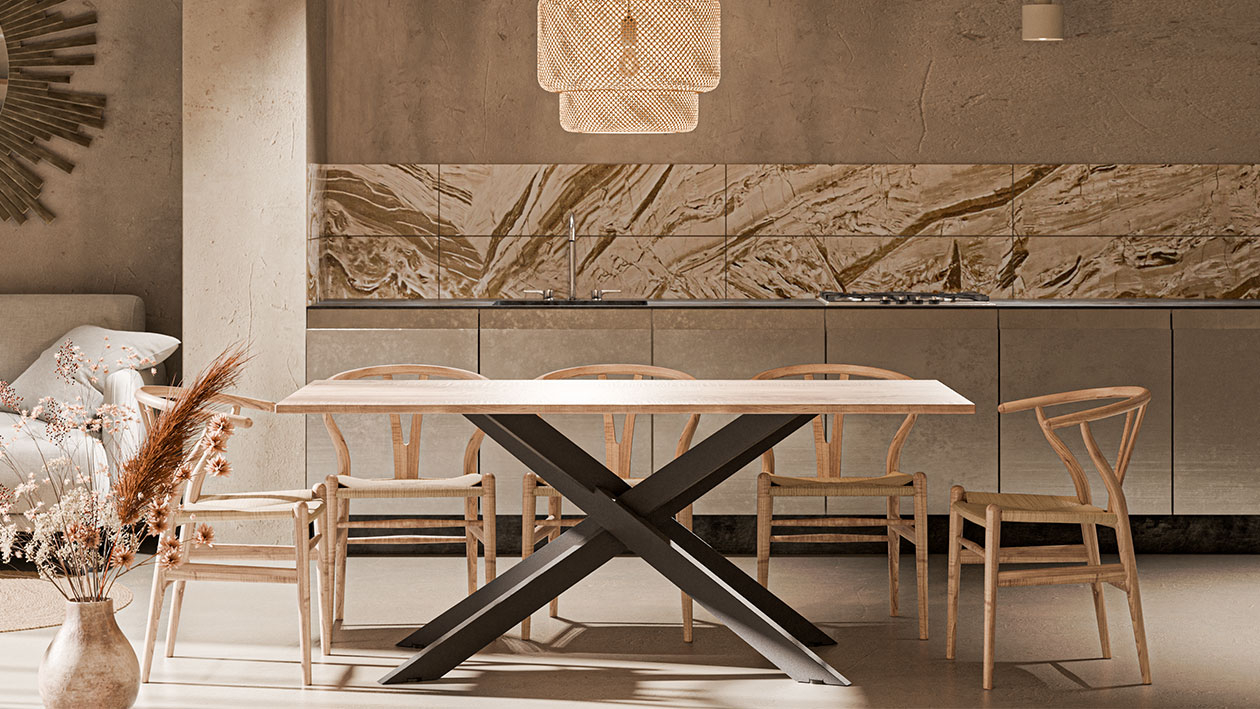 Designul imbina tendintele actuale ale meselor de dining cu linii estetice rafinate si finisaje de inalta calitate. Baza este livrata demontata, iar montajul este simplu si rapid. Constructia este realizata astfel incat suruburile si sudurile sa nu fie vizibile, oferind un aspect curat si elegant.